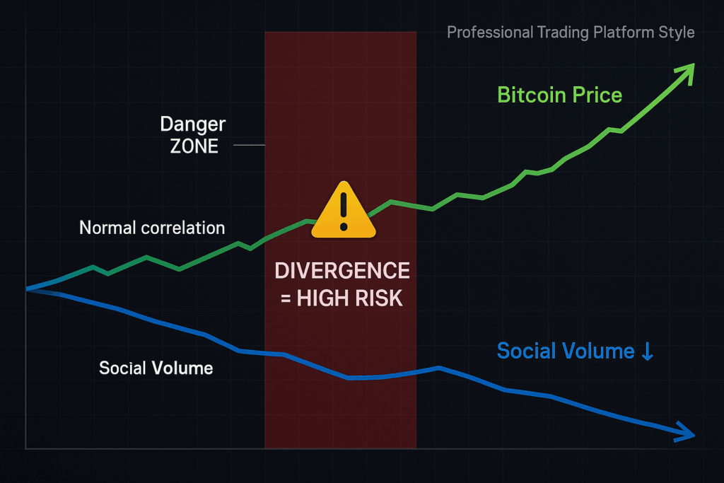 → Buzz is fading or turning negative while price is still up = classic local top risk.