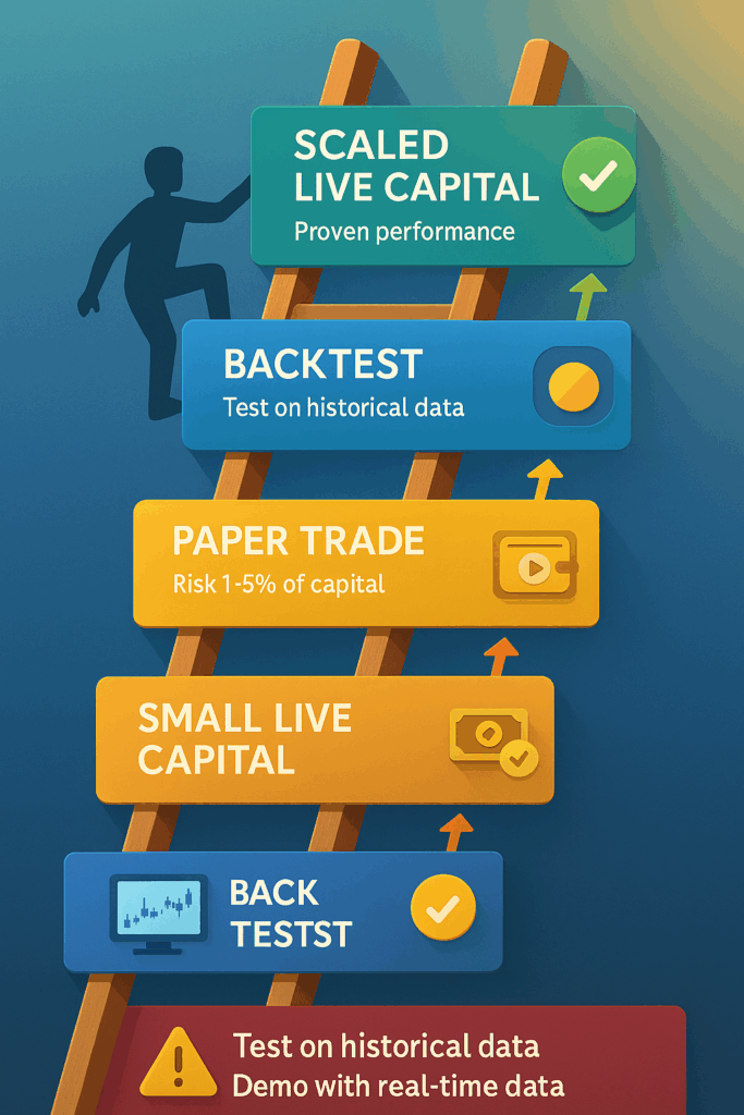 6. If both line up reasonably well, go live with 1–5% of your capital at 1x leverage.