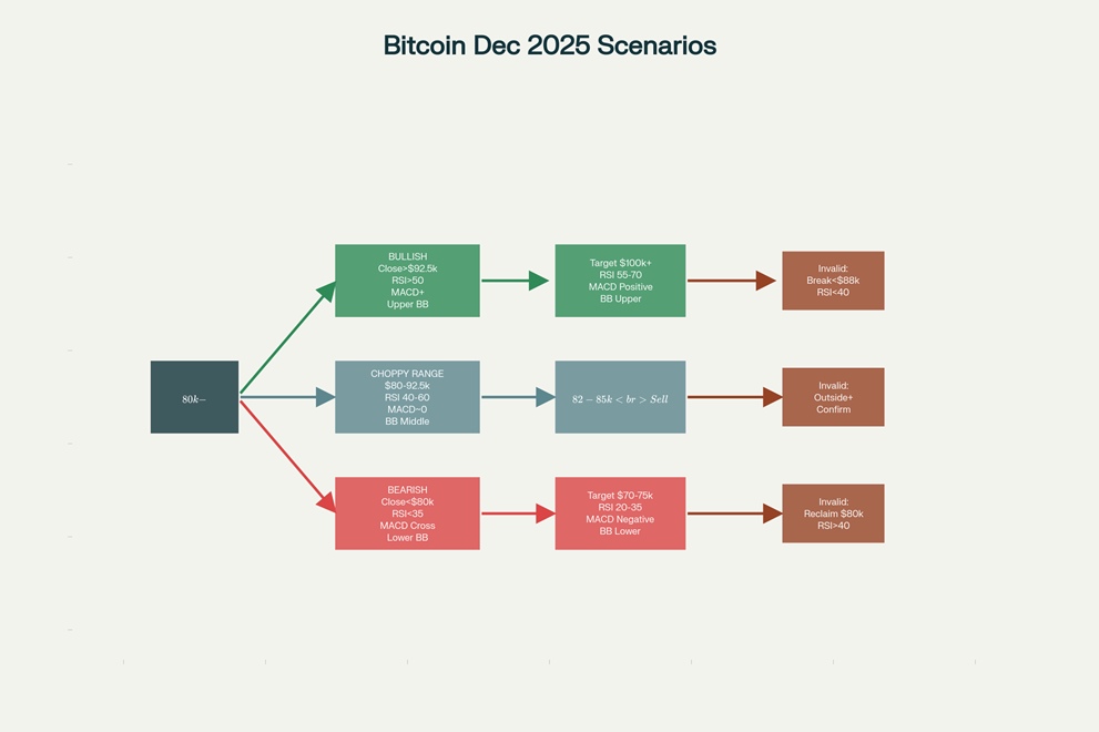 Bitcoin enters December 2025 at a critical inflection point after a sharp November correction. The month featured a dramatic pullback from highs near $95,000–$100,000 down to support levels in the low $80,000s, creating overlapping technical signals that traders must parse carefully. This comprehensive guide walks through real Bitcoin price data and technical indicators from late November into December, showing you exactly how to read RSI, MACD, and Bollinger Bands in context rather than as isolated signals. The goal isn’t to predict prices but to help you understand the technical structure, build realistic scenarios, and manage risk as Bitcoin navigates potential breakouts or breakdowns.