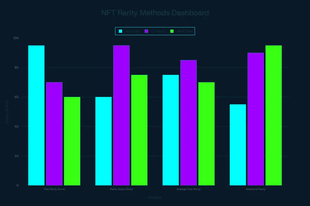 In practice, an NFT’s overall rarity score is the sum of all its trait scores. This method is reliable and transparent—it’s why tools like Rarity.tools and Art Blocks’ internal ranking systems use it.