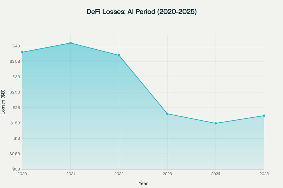 The data supports cautious optimism. Losses declined from $4.1 billion annually (2021) to $1.49 billion (2024) as AI adoption accelerated. While 2025 shows reversal, security researchers widely attribute this to emerging exploit sophistication that’s deliberately designed to evade current detection systems—exactly what we’d expect in an arms race between defense and attack. The question isn’t whether AI will prevent all DeFi hacks; it won’t. The question is whether AI, paired with better architectural practices and insurance mechanisms, can reduce total losses enough that DeFi becomes economically viable for institutional risk-averse capital.